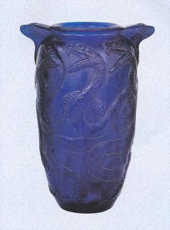 Les oeuvres, toutes de petit format, présentent des décorations inspirées de la Nature: coquelicots des champs et de montagne, chrysanthèmes du Japon, anémones, chardons, boutons de rose, violettes, fruits du prunier et de la vigne, nymphettes, papillons, mouettes, loups ou bien, et ce sont alors des réalisations de forme rigoureuse et d'une coloration de pâte raffinée, elles portent des motifs inspirés de la Grèce antique, des figurations classiques, des formes géométriques et de petites rosaces. La découverte du tombeau de Toutankhamon en 1923 lui suggère des décors égyptiens qui vont entrer dans son répertoire: gazelles, singes, scarabées, éventails et feuilles de palme; après 1930, il développe un décor géométrique à facettes, losanges et spirales, mais désormais, à cause de la crise économique, il est contraint de fermer son atelier et de se remettre à travailler seul, chez lui. Le procédé de la pâte de verre, du fait de sa fusion nécessaire dans le bronze, requiert davantage de matériel technique: le modèle étant réalisé en plâtre, chaque maître emploie des procédés différents pour obtenir les multiples formes d'une oièce; on coule dans le moulage la pâte issue du verre pilé et pulvérisé, on la colore au moyen d'oxydes métalliques oui. réagissant à chaque fois différement, permettent d'obtenir à partir de la même matrice des variantes originales qui donnent des pièces uniques.