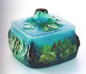 Décorchemont s'inspire des fleurs et des animaux, mais c'est aussi un artiste de talent lorsqu'il crée des angelots, des masques, des coquillages et des ramages aux couleurs originales et pittoresques, l'ambre, le rose, le violet, le bleu et le vert. Comme Argy-Rousseau, Décorchemont utilise pour ses pâtes de la poudre de cristal et de verre et un bon pourcentage d'oxyde de plomb.