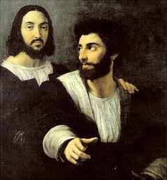 Raffaello Sanzio (Urbino 1483- 1520) a 10 anni è allievo prediletto nella bottega del Perugino. La sua arte rimase per secoli esempio per svariate scuole pittoriche. Raffaello, l'uomo del Rinascimento, la luce e l'ombra percorre la sua divina fantasia, ci rivela la grande pittura del XVI secolo, grazia e bellezza. Opere scatenate dall'incontro con altre due illustri personalità guida del culminante Rinascimento, suoi amici-rivali, Leonardo (1452-1519) e Michelangelo (1475-1564) per la sublime e idillica Universalità raggiunta.