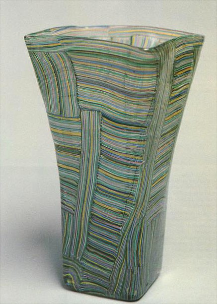 Le opere esposte alla Galleria ''Rocca 6" sono provenienti da una collezione privata, 65 in tutto, diversi i pezzi unici, alcuni pubblicati sulla rivista "Vetro d'oggi" di Aloi. Fra le cose più belle vi è una coppa incisa a sabbia, con baccanti, su disegno di Oskar Koskoshka per la fornace Ferro Lazzarini; ancora altri esempi di collaborazione tra artisti e maestri vetrai: la bellissima "Valva" in vetro sommerso a tre colori realizzata nel 1950 da Flavio Poli, direttore artistico della Seguso; un gallo di Bruno Saetti del 1954, un uccello di Rizzetto sempre del 1954 e un vaso a rilievi colorati disegnato da M. Carraro, realizzato da A. Carraro e prodotti dalla Ferro Lazzarini; elegantissimo piatto, esemplare unico in vetro soffiato e inciso alla ruota, su disegno del pittore Serena, realizzato dalla S.A.L.I.R. Murano; il vaso amorfo in vetro grigio del 1952 di Barovier; con un importante insieme di sculture e di vasi Venini, è da apprezzare il famoso "fazzoletto" in vetro giallo di Fontana Arte. Per quanto riguarda i prezzi, le cifre oscillano dalle 200 mila Lire alle 800 mila per piccoli vasi e vetri di serie, per giungere ai 2 milioni per le sculture di Venini, mentre alcuni pezzi unici raggiungono la cifra di 4-5 milioni per esemplare.