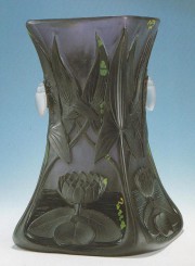Il top lot, a 390 milioni, è stata una coppa Gallé (lotto 205, h 20 cm) “Cigales et scarabé” in vetro a più strati cesellato con mola e ruota a soggetti zoomorfi e vegetali su di un fondo martellato. Alte aggiudicazioni anche per tre vasi Daum: il primo a balaustro in vetro doppio intagliato alla ruota con decorazione di iris su fondo bianco opalescente martellato (lotto 37, 1897, h 28 cm, 360 milioni), il secondo, “Libellules et flore des marais”, eseguilo a vetrificazione intercalata (lotto 158, 1904, h 60 cm, 270 milioni), e il terzo, “Bouton de nénuphar”, in vetro soffiato in matrice (lotto 164, 1906, h 15 cm, 240 milioni). Vi sono stati, inoltre, molti Gallé, dalle tipiche lavorazioni di maîtrise, che hanno ampiamente superato le stime, come una marqueterie con motivi a iris (lotto 96, h 20,5 cm) e un vaso con violette nella stessa tecnica (lotto 157, h 23,5 cm), battuti entrambi a 90 milioni, un vaso a decorazione di alberi e versi incisi (lotto 134, h 22,5 cm, aggiudicazione 210 milioni) e un vetro a forma di pesce, da un lato raffigurante, a smalti policromi ed oro, una carpa e dall'altra dipinto a foglie di loto (lotto 163, h 38 cm) che, stimata 45, ha raggiunto i 175 milioni. Altrettanto è successo per Daum: il vaso crocus (lotto 100, h 30,5 cm) ha realizzato 50 milioni, un vaso decorato a tulipani (lotto 114, h 40 cm) è stato aggiudicato a 80, uno con cardi e glicini, molato alla ruota (lolto 122, h 50 cm), è stato venduto a 120 milioni, ed uno con ortensie incise (lotto 144, h 31 cm) ha ottenuto 75 milioni. Nell'ambito dei vasi eseguiti con la tecnica del soufflé moulé, in altorilievo, i prezzi sono notevolmente saliti rispetto alle precedenti aste e alle correnti quotazioni. Stessa aggiudicazione, 130 milioni, hanno avuto due Gallé, il primo, con decorazione di mele (lotto 168, h 29,5 cm), il secondo di arum (lotto 142), che partivano da 55 e da 70 milioni.